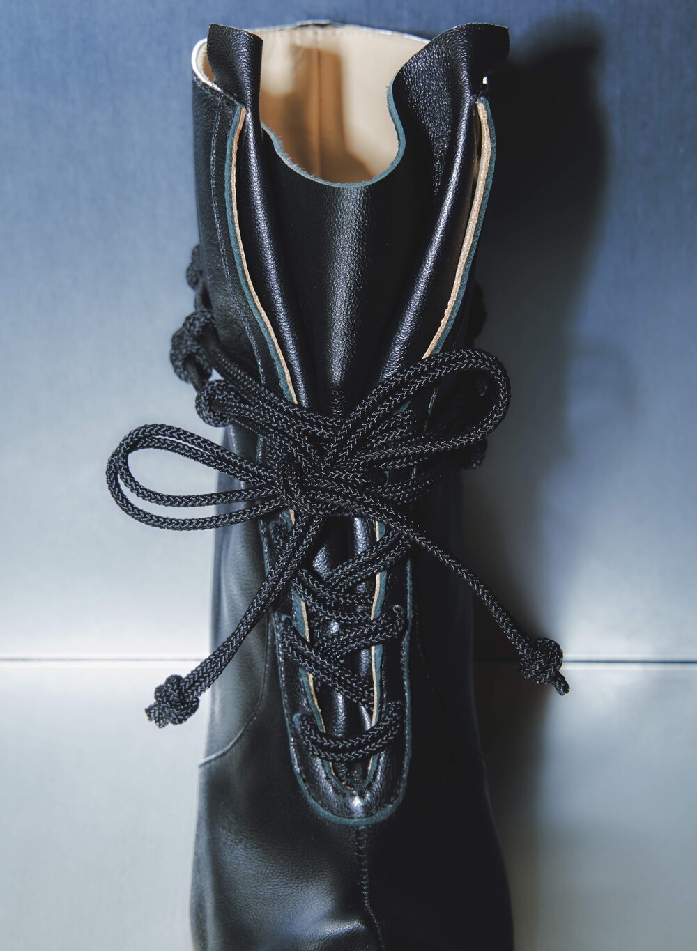 무려 2m 60cm 에 달하는 끈을 손으로 직접 엮어 만든 매듭 스트랩을 발목에 감아 착용하는 슈즈로,