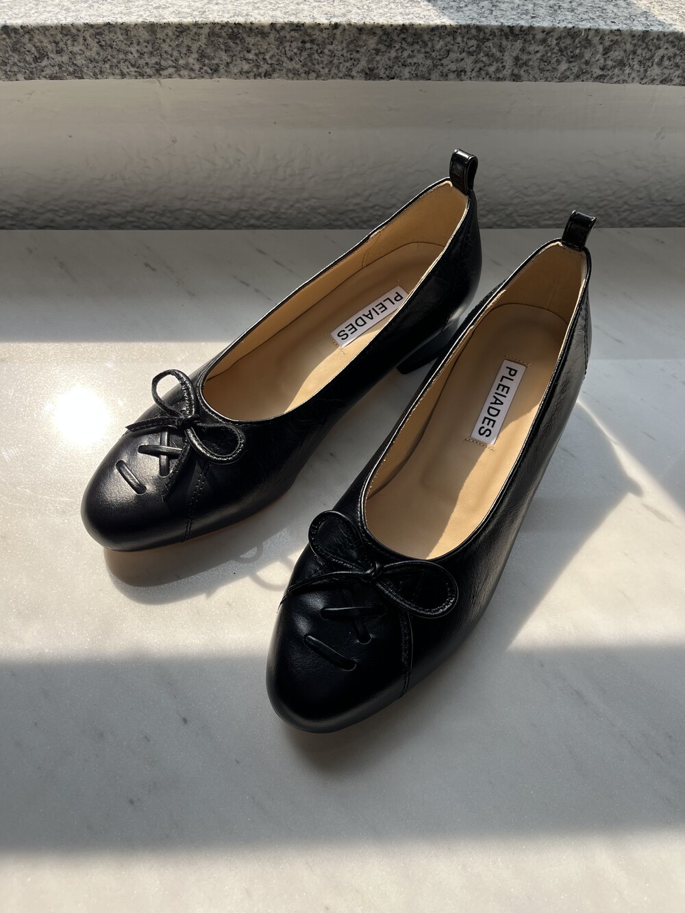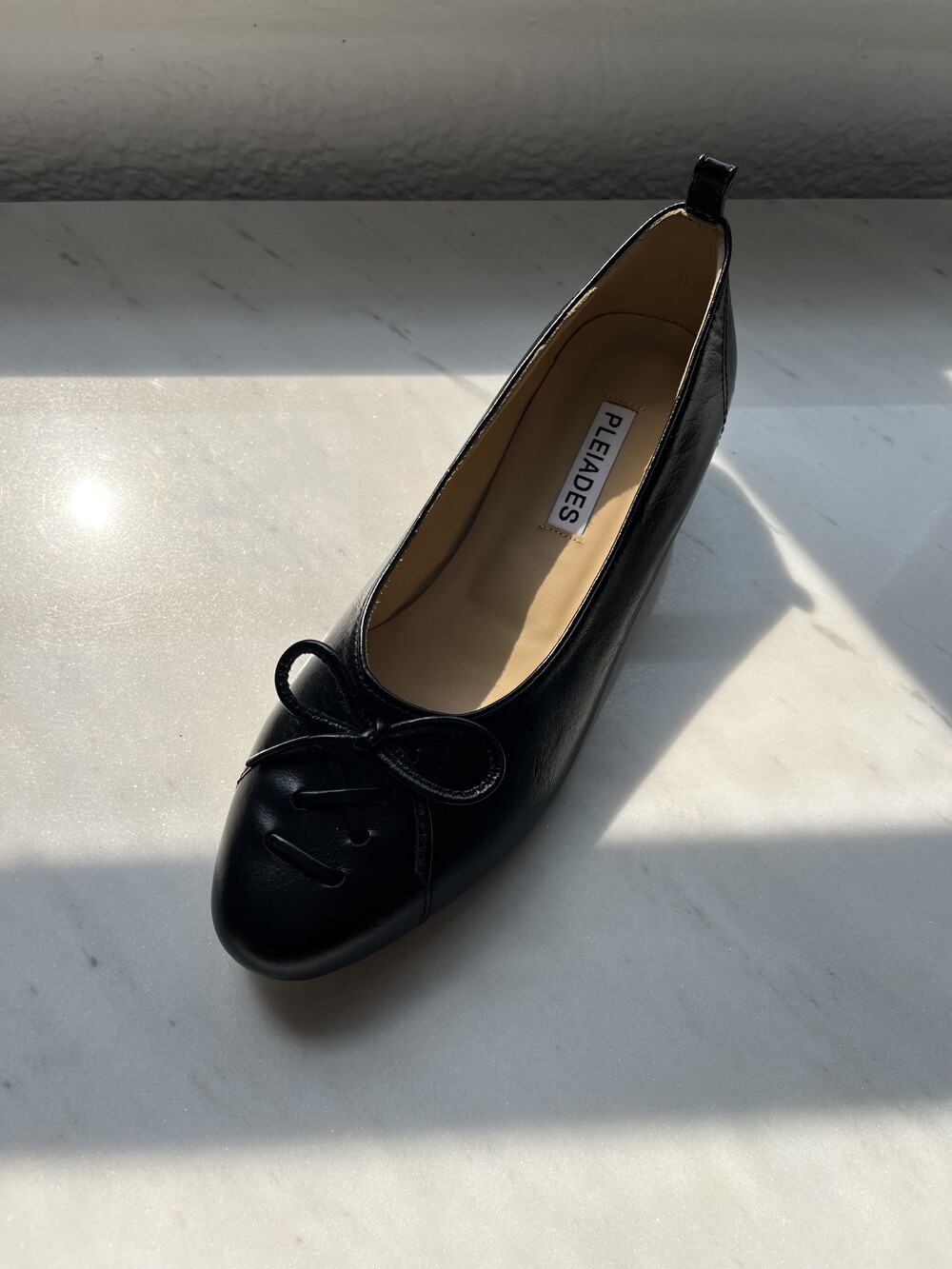이탈리아 직수입 라스트의 섬세한 셰잎, 레이스업 리본과 스티칭 디테일이 더해져 클래식한 매력을 선사합니다.