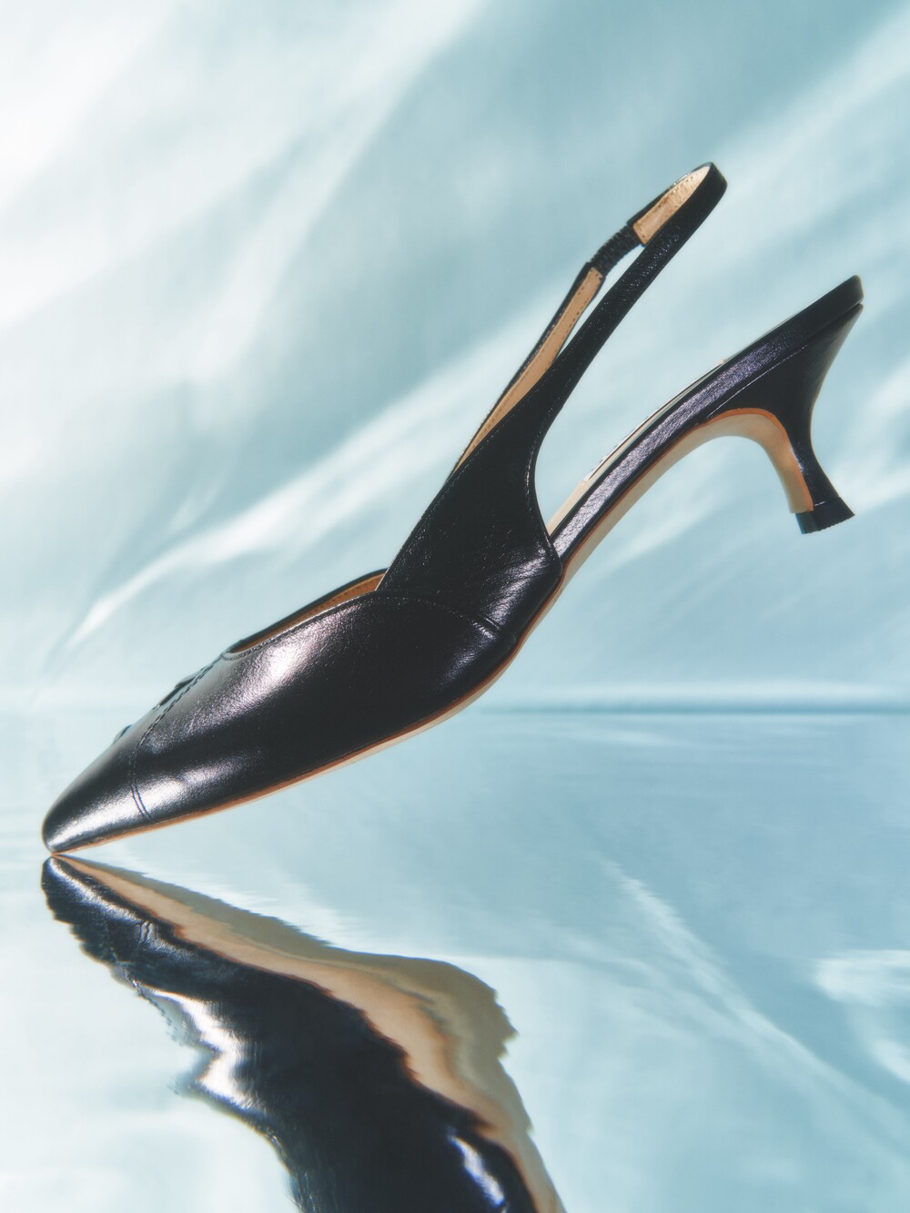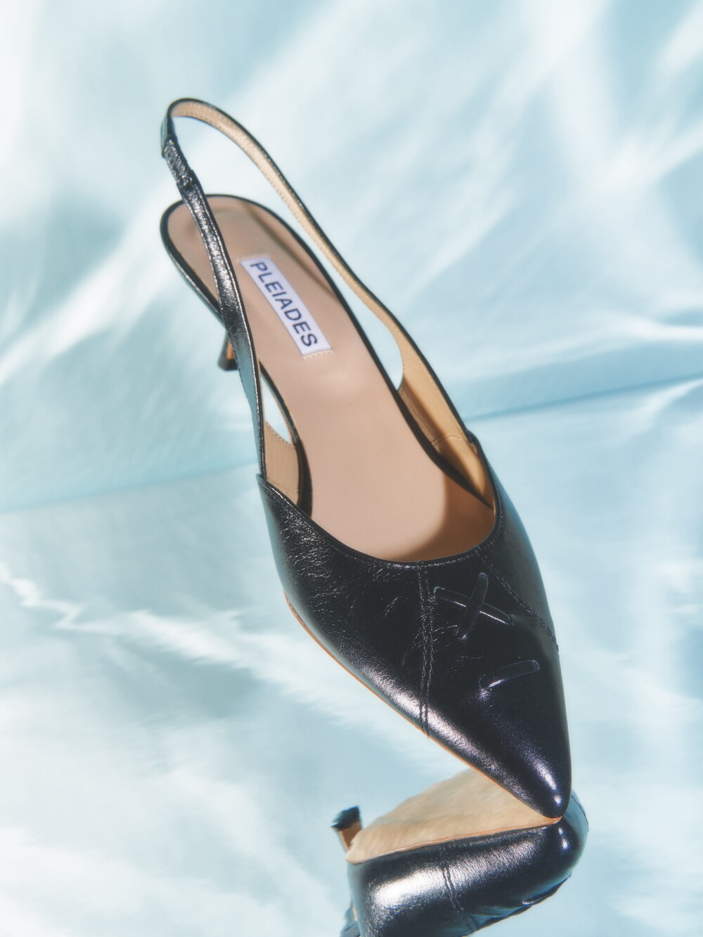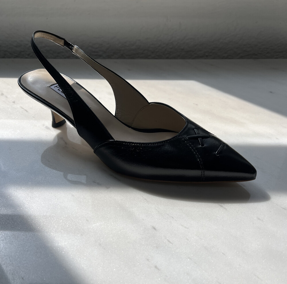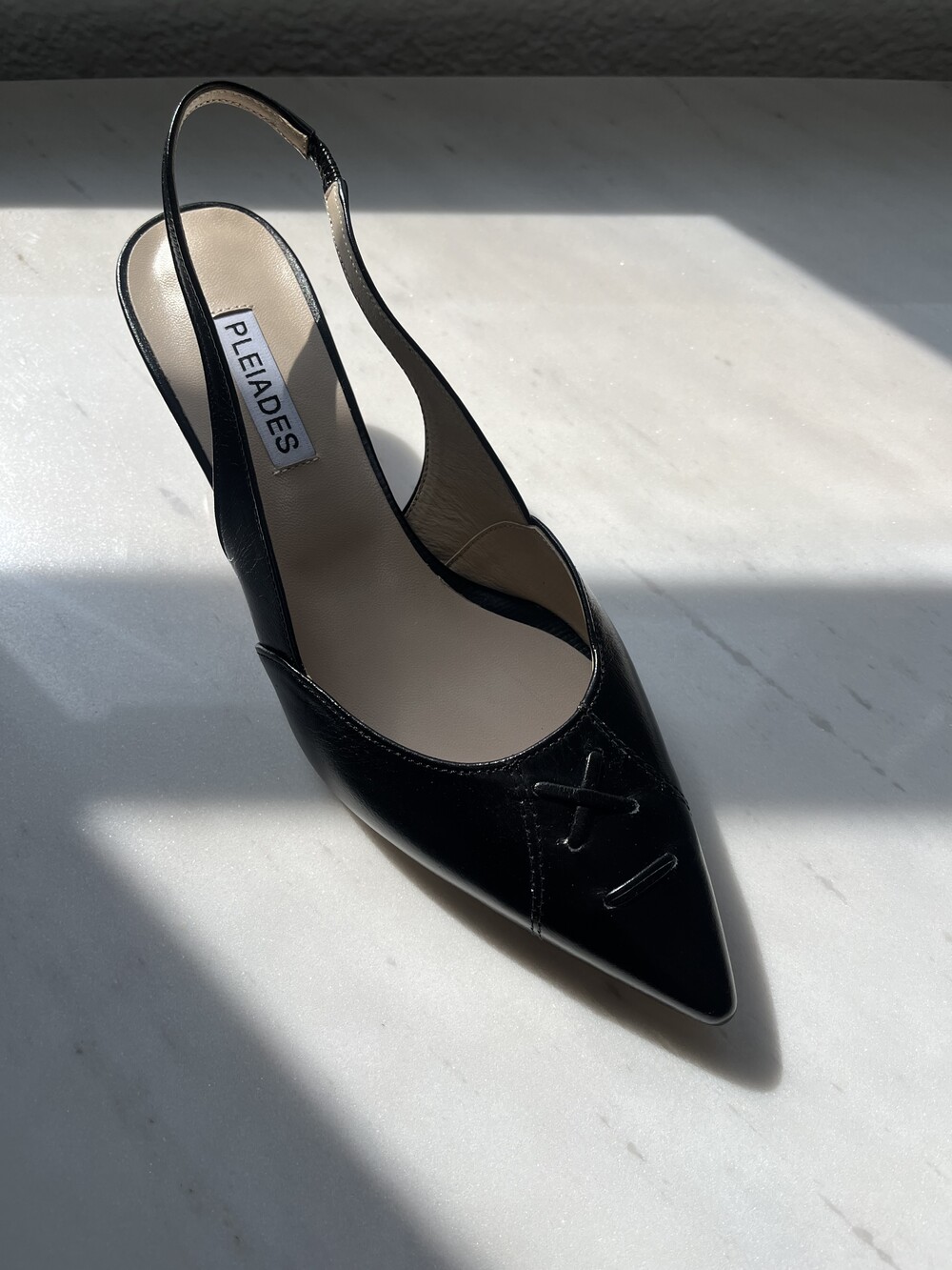 레이스업 디테일이 매력적인, 심플한 슬링백 펌프스 입니다.