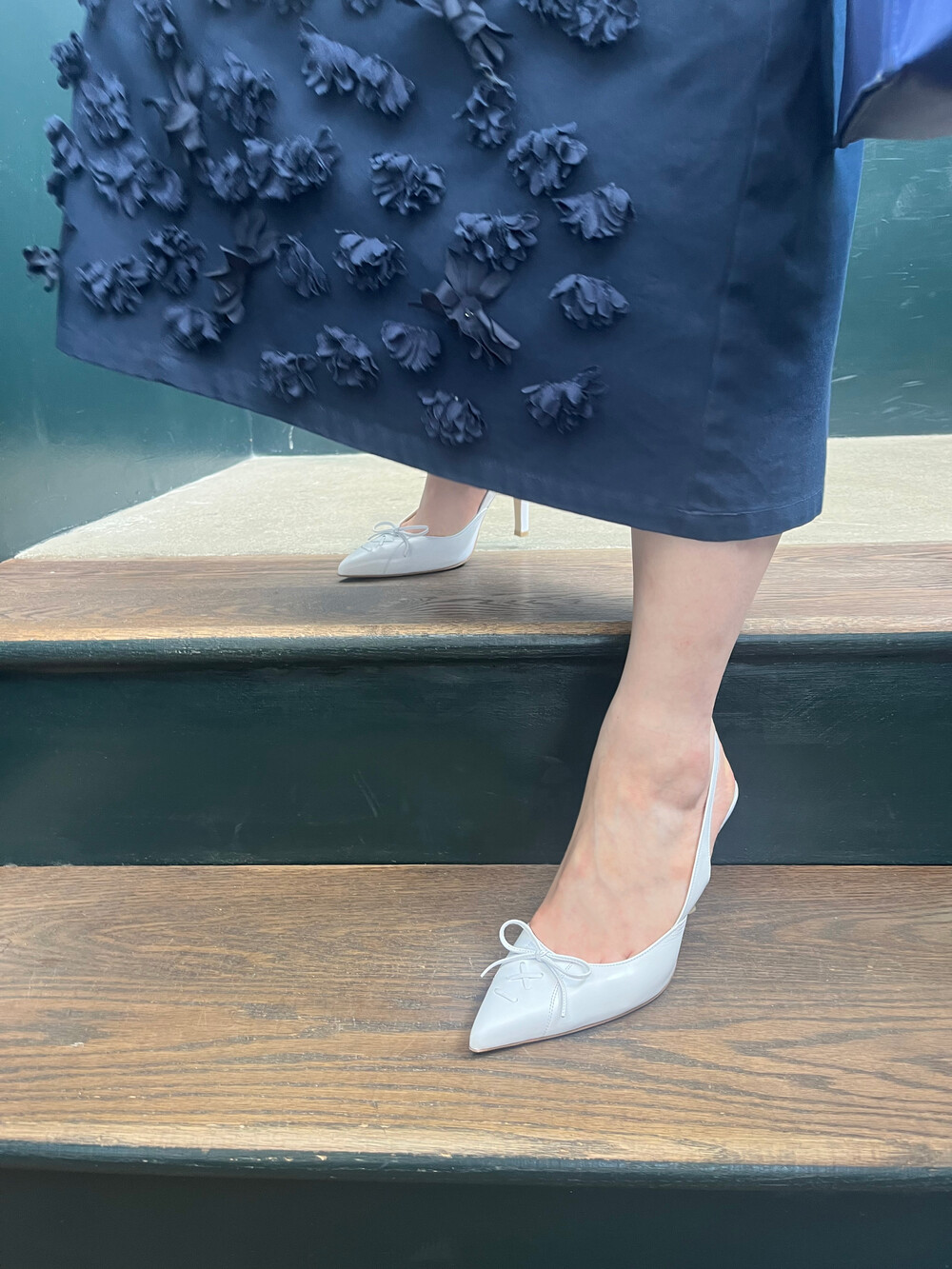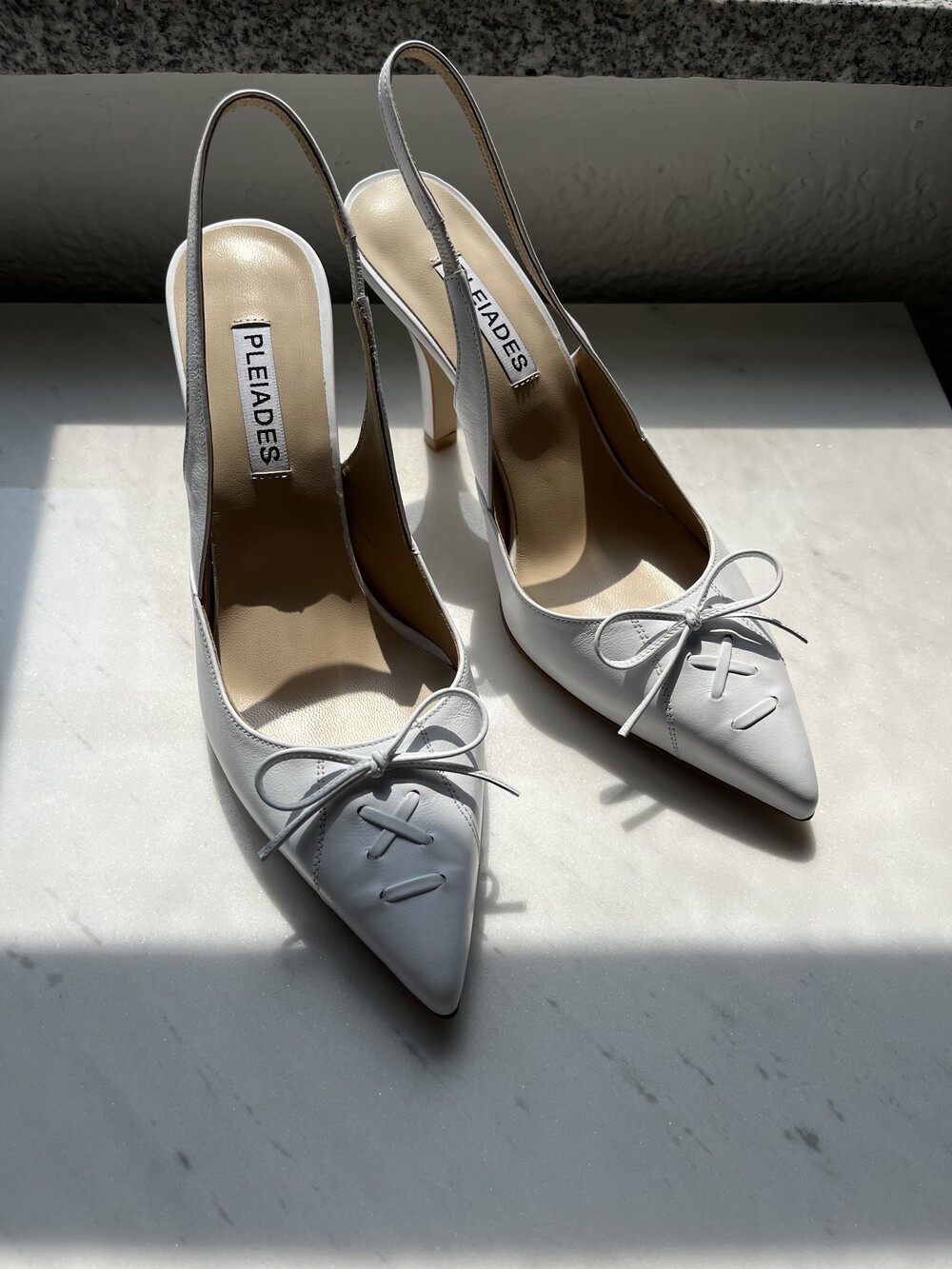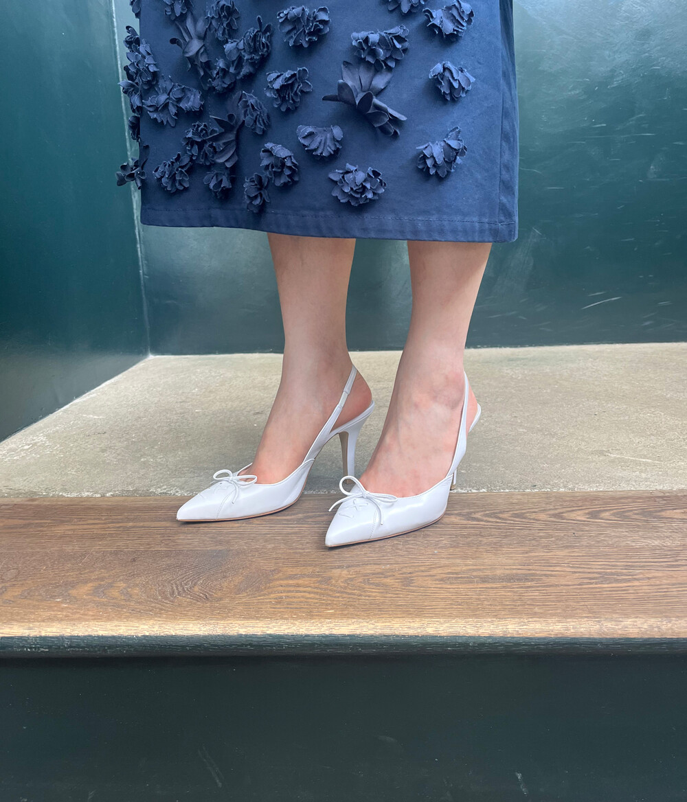 레이스업 리본 디테일이 매력적인, 슬링백 펌프스 입니다.