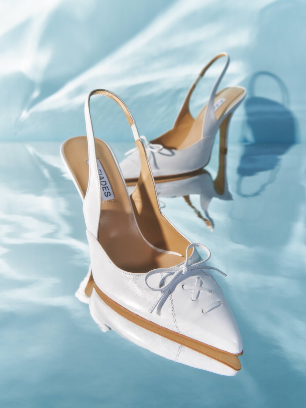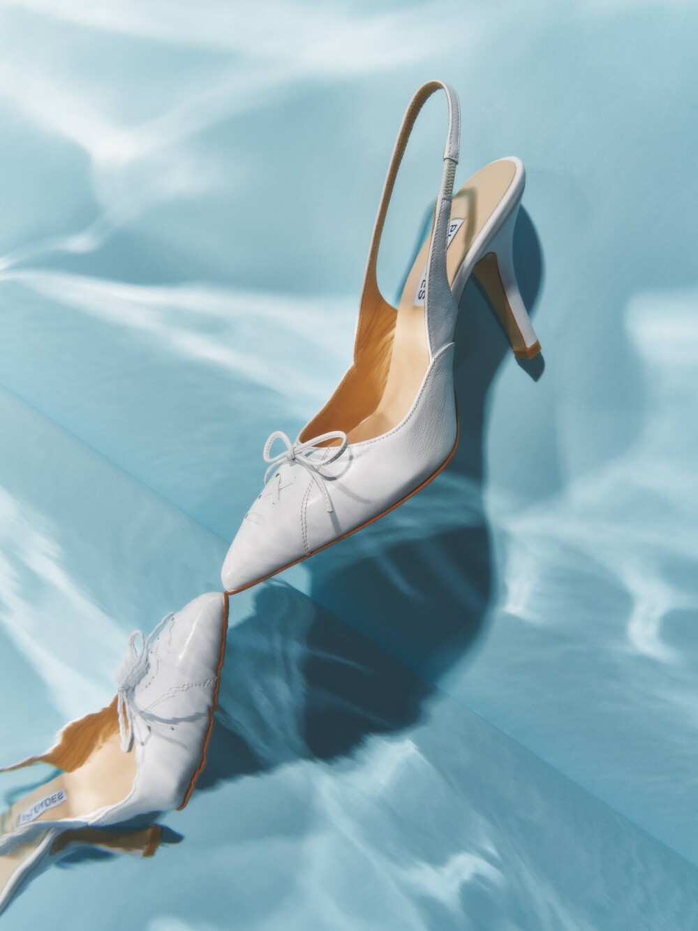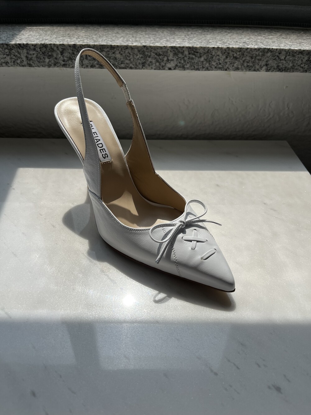레이스업 리본 디테일이 매력적인, 슬링백 펌프스 입니다.