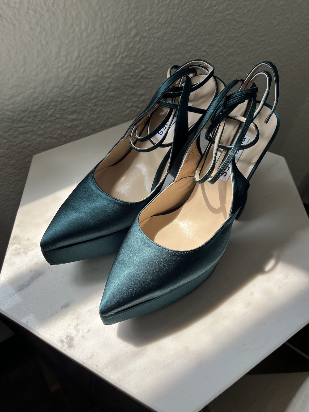 슬링백 시리즈의 베리에이션으로, 은은한 광택이 도는 새틴으로 제작하여 깊은 그린의 컬러감을 더욱 우아하게 살려 주었습니다.