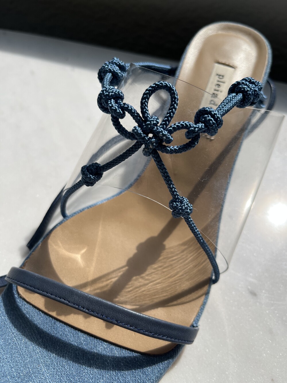 • MATERIALS : Hand-tied Knots, PVC, Blue Denim, Cow Leather Lining
