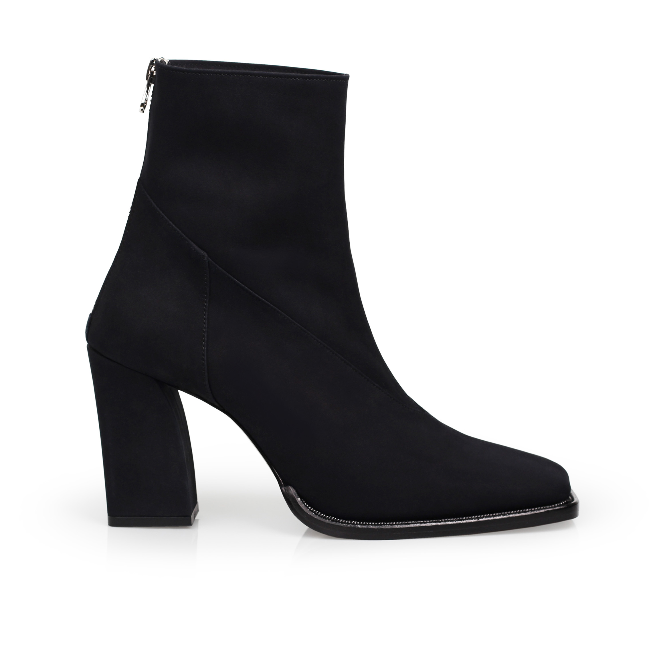 최고급 이탈리안 누벅을 사용하여 실키하게 떨어지는 부드러운 소재감을 살려 준 슬림한 앵클 부츠 입니다.