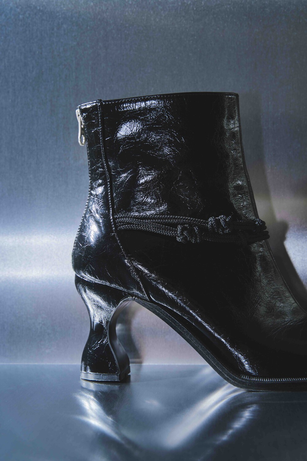 유니크한 셰잎과 매듭 스트랩이 매력적인 부츠, 실바 입니다.