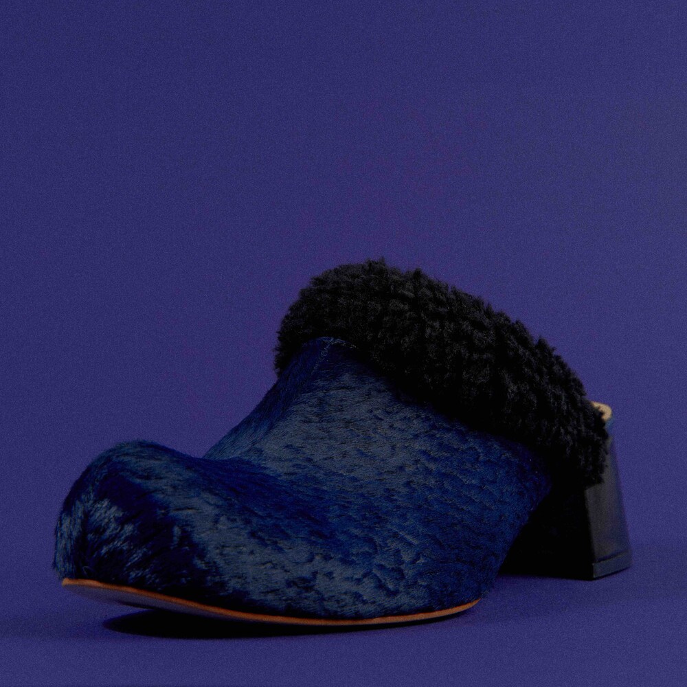 플레이아데스의 시그너쳐 셰잎에, 테디베어 시얼링과 깊은 블루의 송치를 사용하여 색다른 매력의 슈즈로 탄생시켰습니다.