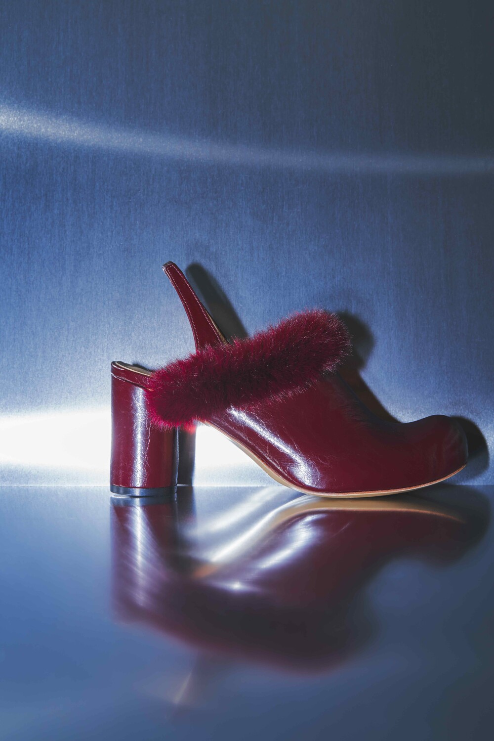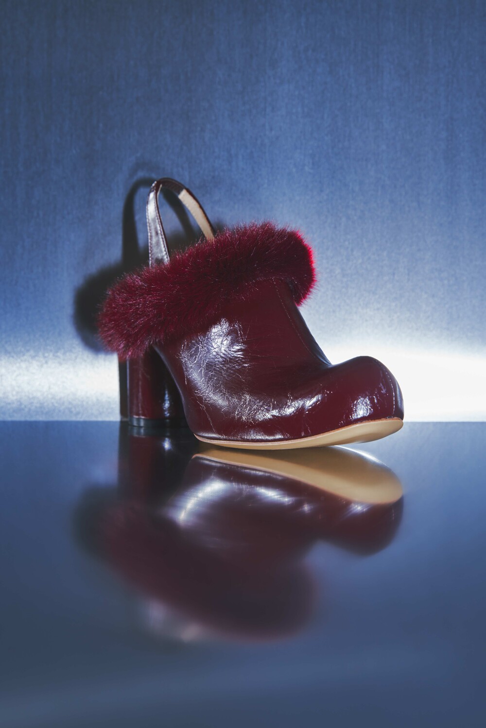 • MATERIALS : Glossy Cow Leather, Synthetic Fur Trimming, Kip Leather, Elastic Band, Cow Leather Lining